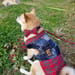 初めて犬服で裏地付きを作りました。ワタが家に無かったので中はフリース生地、外はオックス生地にしてリバーシブルにしています。でも中がフリースのが暖かそうなのでこのまま羽織って散歩に出かけています。