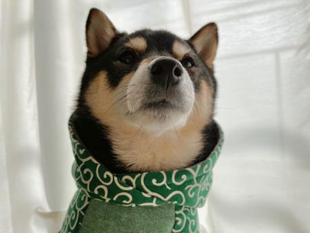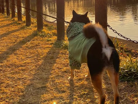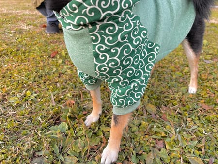 唐草模様のニット生地を買ったので、愛犬の柴犬用のパーカーを作りました。