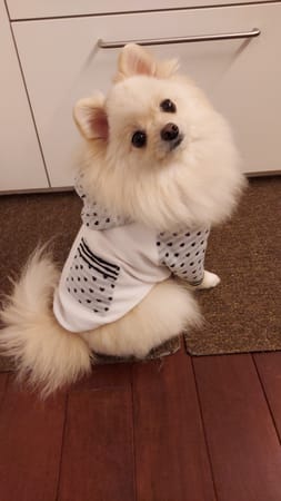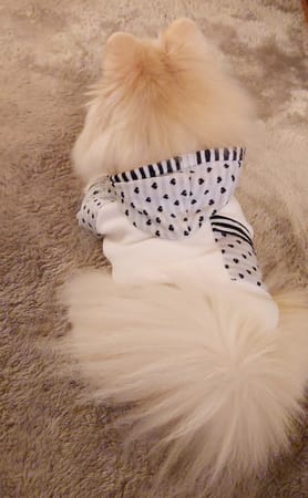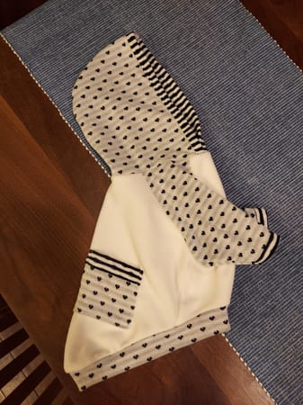 冬用に身頃をマイクロフリースでパーカーを作りました。モノトーンだけど小さいハート柄で控えめに可愛い服になりました。