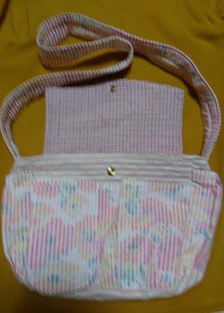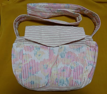マグネットで開閉できる蓋つきのお散歩バッグです。6個目です。蓋が付いているとお散歩だけでなくお出かけにも使えます。