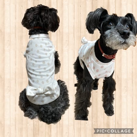 クール生地で夏用のお洋服。 裾に同じ生地でフリルを付けてペプラム風に。 真ん中にリボンも付けて。 シンプルで可愛い夏服の出来上がり。
