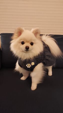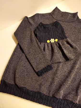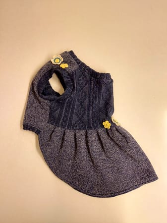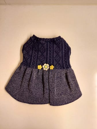 犬服とママ服お揃いを作りました。地味目な紺色系の生地なので、犬服にはお花をつけました。お出かけが楽しみです。