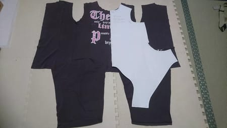 息子のTシャツのリメイク作品です。Tシャツの袖部分をズボン部分になるようにくっつけました。