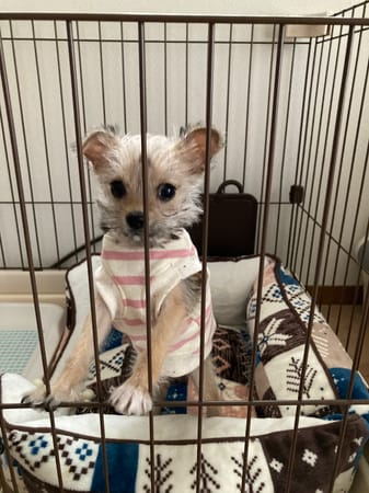 3ヶ月のヨーチーちゃんに作りました。 今まで着れる服がなかったので、3Sサイズの型紙がありがたいです。