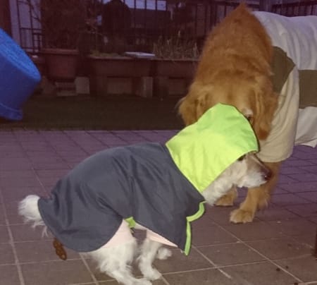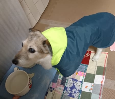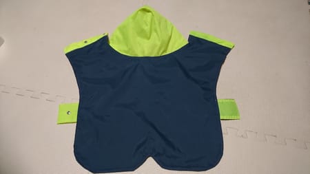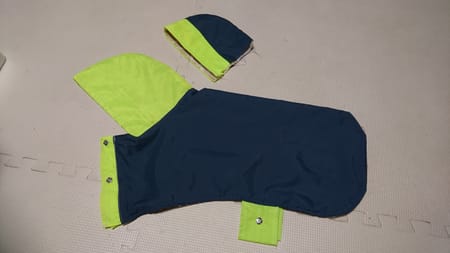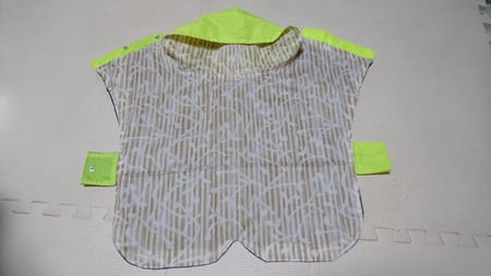 雪や雨が降ってきたときにさっと羽織れるレインコートが欲しくて作ってみました。フードの大きさが小さくて一度ほどいて作り直しています。
