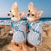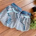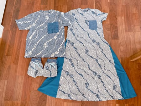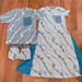 遠目から見たら夏にぴったりな涼しげな印象を与えてくれますが近くで見たらたくさんのお魚さんというなんとも遊び心のある生地で作りました。