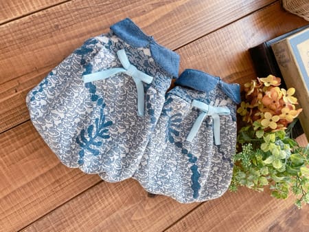 デニム生地は次男が小学生の時に使ってたエプロン˃́ꇴ˂ 『フードロス』ならぬ『生地ロス』というので。