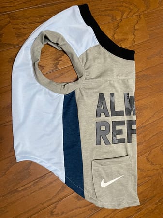 ☆古着をリメイク ☆NIKEマークもったいないからポケットに ☆前身頃は夏使用の冷感素材でひんやり