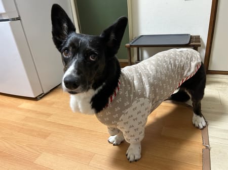 立体革命のTシャツを作ってみました。袖付けにゆとりがあって着せやすかったです。 リバーシブルニット生地を使いました。