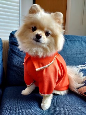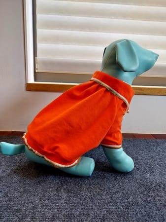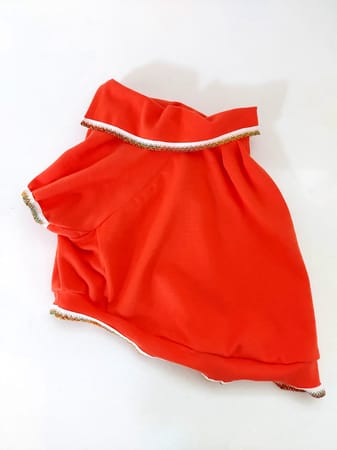 パンプキンコスチュームの型紙を使って作りました。大きな襟と縁取りに使ったハロウィンカラーのストレッチレースがポイントです。遠くから見るとカボチャみたいに見えるかも!
