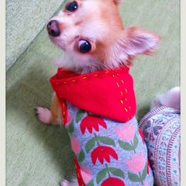 イチゴ柄ワンピース。 レースをたくさん使って女の子らしくしました。