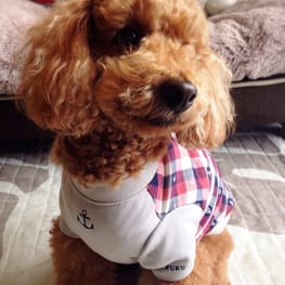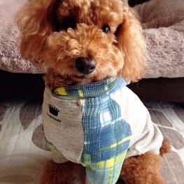 夏はサマーカットをするため、グルーミング時に自分の舌で皮膚を傷つけないように毎年タンクトップを着ています。