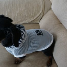 ツイード生地で伸縮がないので前身頃をカットしてボタンでジャケット風にしてみました。