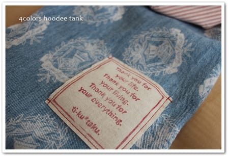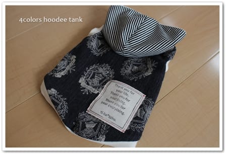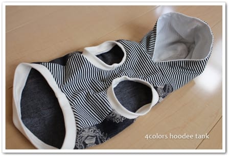 mocamochaさんのストレッチツイルニット生地を使った4色色違いフード付きタンクです♪