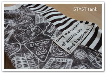 猫の隠れ家さんのストリート柄生地とブラウンストライプ生地を使ったST*STタンクです♪