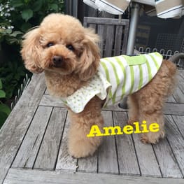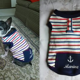 自分でつくれるいぬの服のセーラー風タンクトップを参考にさせていただき、マリンテイストにきめてみました。
