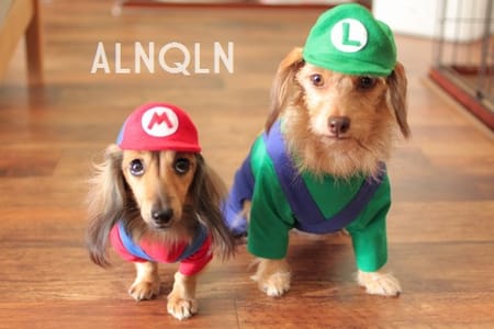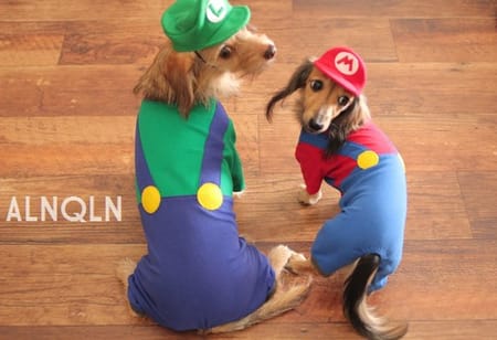 ドッグランでのハロウィンイベントでマリオ&ルイージに仮装。