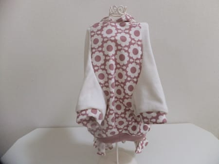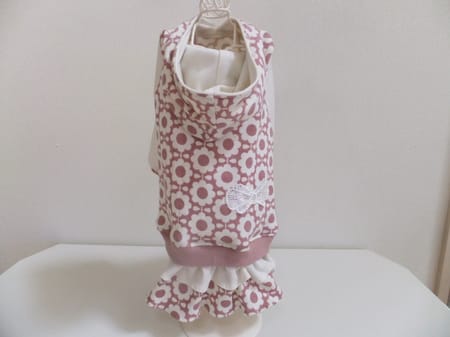 女の子用に二段スカートを付けてアレンジしてみました。着せると裾のリブが伸びるのでスカートが広がってとっても可愛いです!