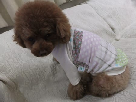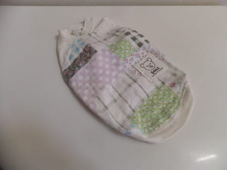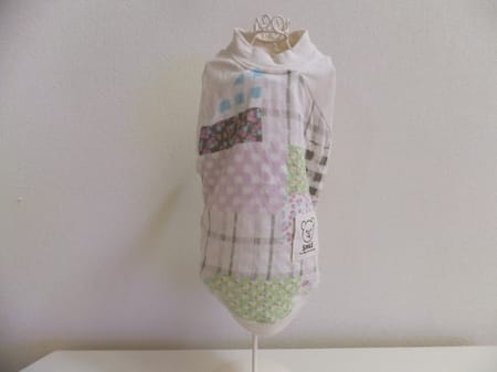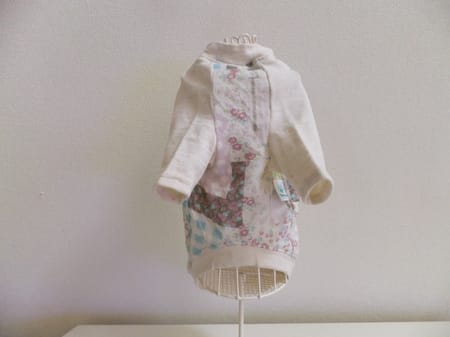 襟・袖・裾は生成り風の生地で、とっても可愛くできました。これにパンツを合わせるともっと可愛くなります。