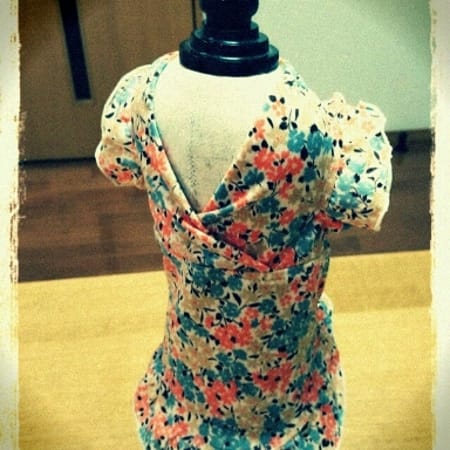 無料タンクトップの型紙をアレンジして、背中開きのカシュクールワンピを作ってみました。