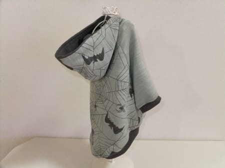カッコイイ生地を調達! パーカーにしてみました。 フードの内側とリブを同じ色で揃えてみました。 袖は同色の無地です。
