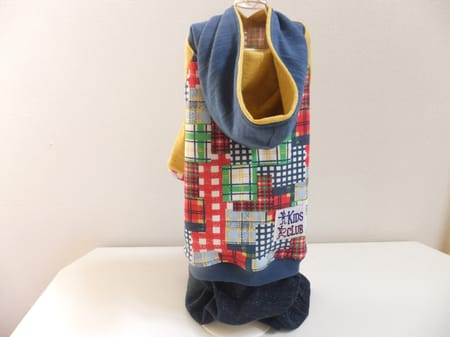 まず男の子用は、黄色のお袖にしてパンツを付けました。フードの中はお袖と同じ黄色でチラ見せ!
