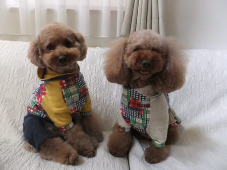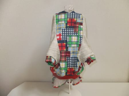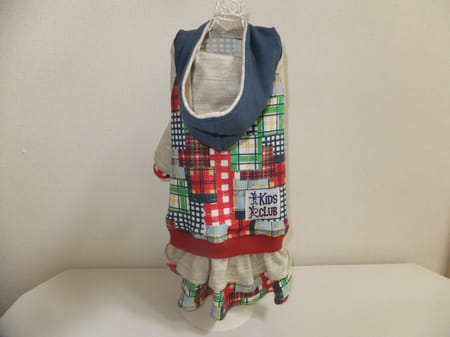 お袖はは赤色にしたかったけど、同じ生地でなかったのでベージュ色でフードの裏とスカートにも一緒の生地を使ってみました。赤色はアクセントにリブで使用。