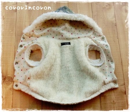 フードにはモコモコ、裏地にはさらふわ、2種類のファーを使い分けしました(^^)