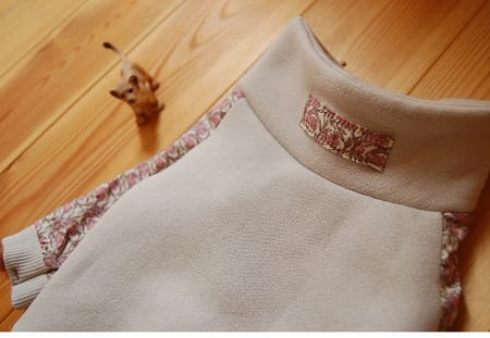 ニットとリバティプリントを合わせて 春らしいブルゾンが出来上がりました^^ このパターンかわいいのでお気に入りです^^ 着脱もしやすいのが気に入ってます