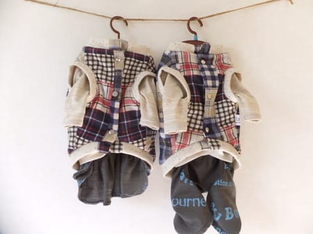 ダウンジャケットのアンダーウェアーをパンツ付きで作ってみました。 こちらは男の子用に!^^