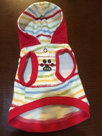 ポメラニアンのような、ボリュームのある毛の子でも、首がきゅうくつにならないように前開スナップボタンをつけました。