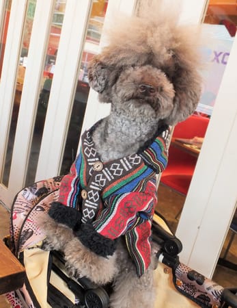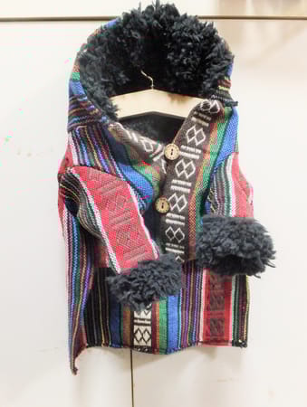 先生の出版記念のワンデイ講習会で作ったコートが完成♡エスニックな柄とボアのデザインです。