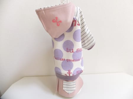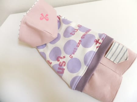 前回作った女の子バージョン! 生地はトレーナー素材ですが…色は春らしい紫ピンク! 可愛くできました^^