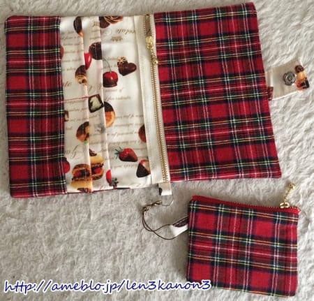 残った生地で洋服とお揃いのフリーケースも作りました。