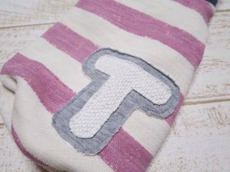 背中にイニシャルをアップリケしました*