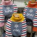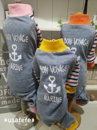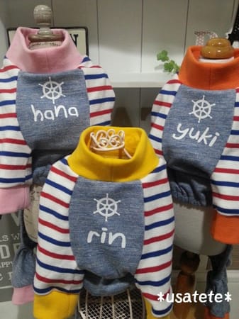 サイズが微妙に違うので、前身頃には自作のアイロンプリントでお名前もいれました。