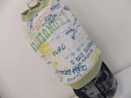 トップスはスローボートさんの生地ですが、スカートはダメージジーンズを使ってみました。 女の子バージョンです^^