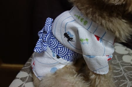 100均の手拭いで作りました。手拭いの柄が豊富なのでまた作ってみたいです。 3Sサイズよりちょっと大きめサイズに作り、浴衣に1枚、帯に1枚の手拭いを使用しました。