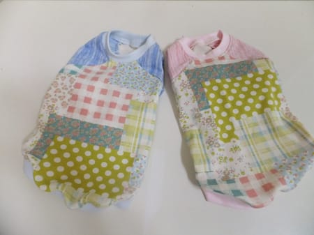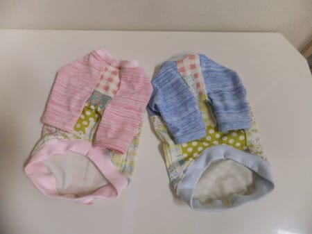 ワンちゃんにとってはとても動きやすいラグラン袖! これから秋冬に向かって、お袖で遊べるのが楽しいです^^ 今回はブルー&ピンクにしてみました。