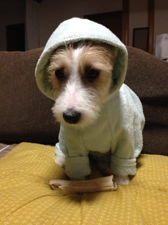 お風呂上り、プールの後に着せたくて作りました。 袖が少し長かったです(^^ゞ