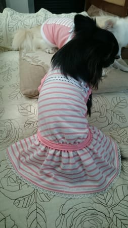 接触冷寒の生地で作りました。 スカートが少し長すぎたのが欠点かな? 時間のある時に直します(*_*)