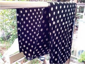 洗濯によって縮みやすいので、購入したらまず「水通し」をしましょう。生地をきれいにたたんで洗濯ネットに入れ、30分~1時間程度、水に浸します。軽く押して水を切り、日の当たらない平らなところに広げて干します。