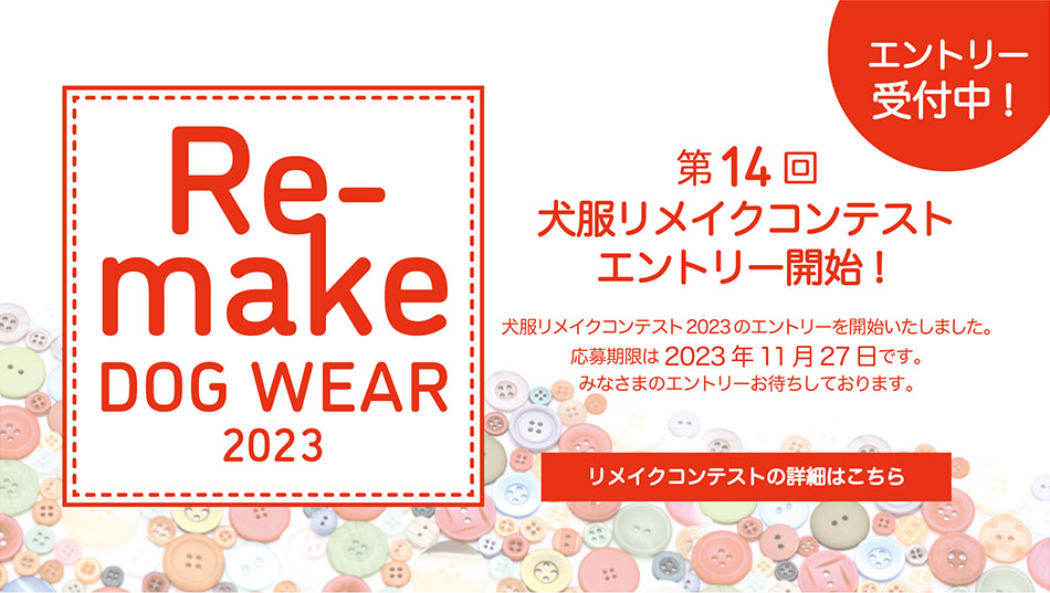 今年で14回目となる「手作り犬服リメイクコンテスト」のエントリーが本日よりスタートしました!