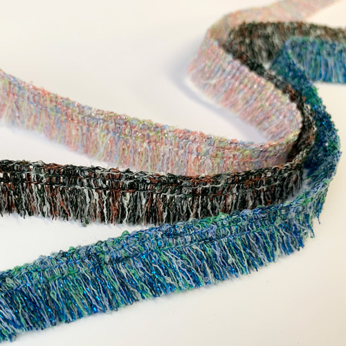 毛足が短めで、カラフルなマルチカラーのラメフリンジです。