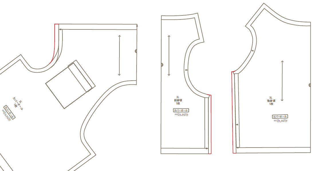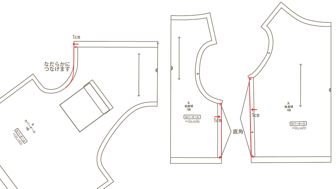 例:3cm短くする 後身頃、ズボンどちらでも短くしていただけます。 (上下のバランスのお好みによりどちらを短くするのかお選びください。)
