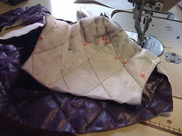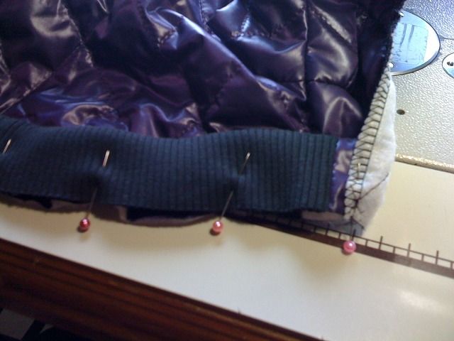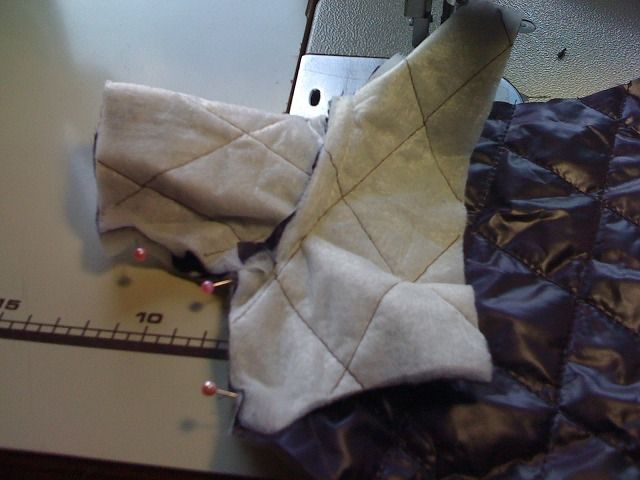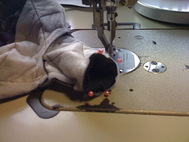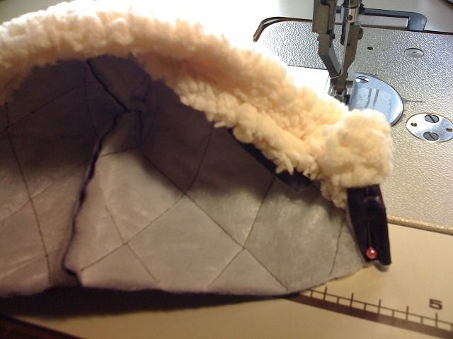 今回はフード付き、袖付きで作ります。 (フードなしの場合は、すそリブと同じ作り方で首リブをつけてください。) ステップ3まではダウンジャケットのレシピ通りに作ります。 ステップ4から作り方がまったく変わってきます。