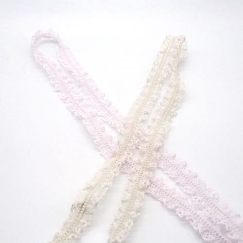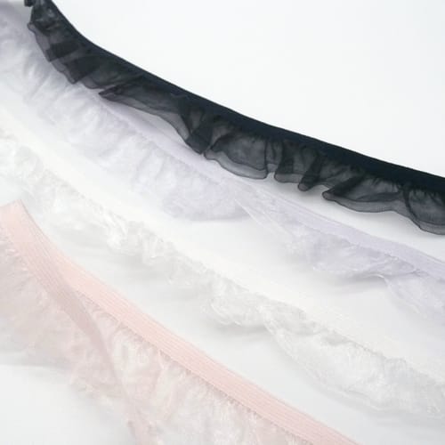 肩紐は上のトーションレースのようにゴム部分の両側にフリルがあるタイプがかわいいです。
