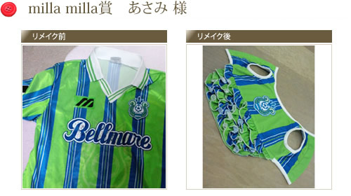 milla milla賞は、milla millaの犬服デザイナー&パタンナーの"とわ"が独断で選んだリメイク犬服です。