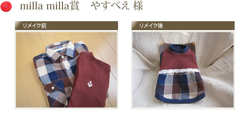milla milla賞は、milla millが独断で選んだリメイク犬服です。