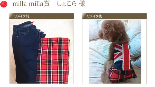 milla milla賞は、milla millが独断で選んだリメイク犬服です。